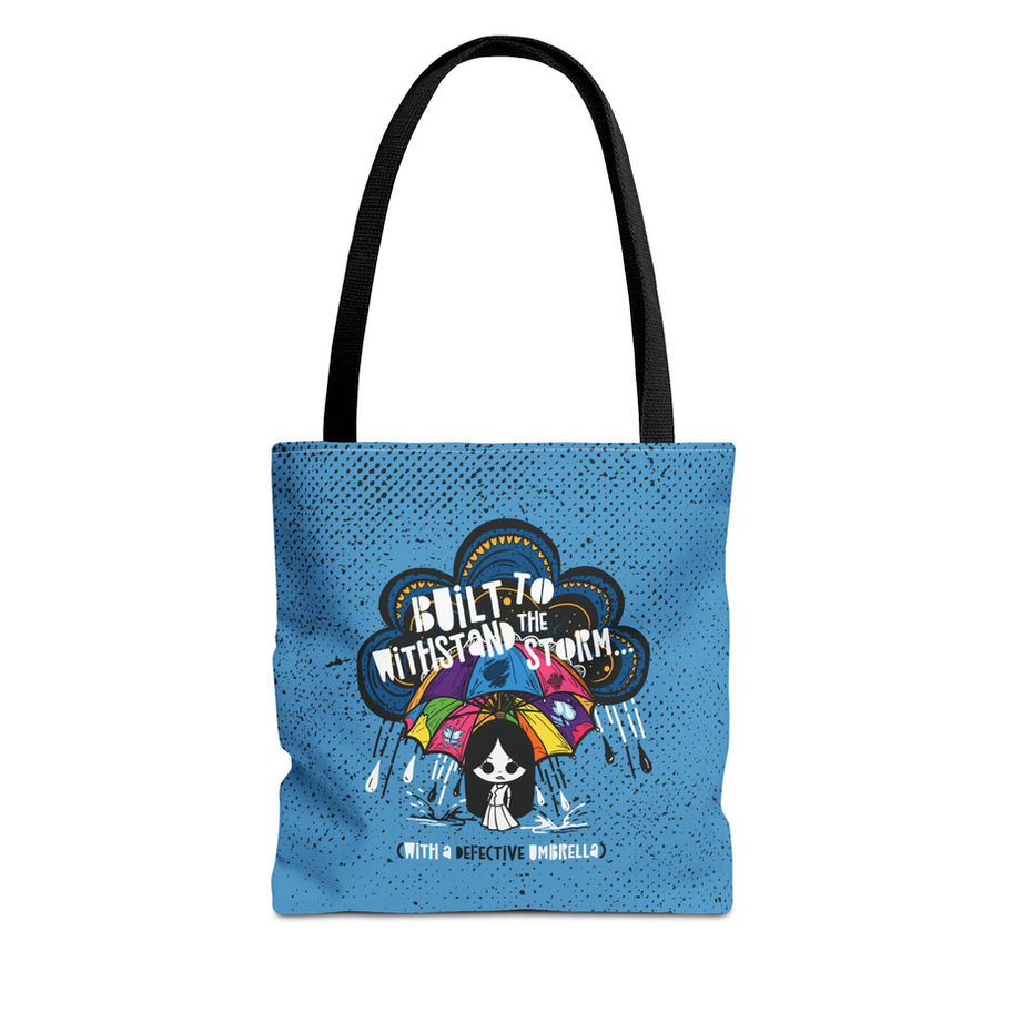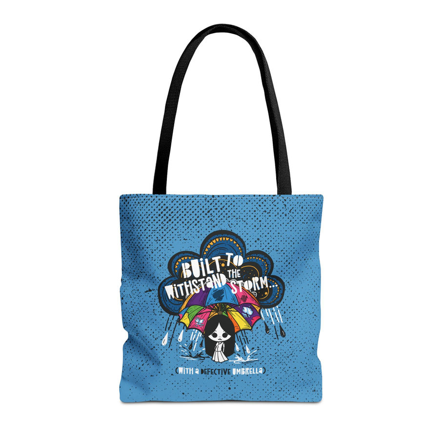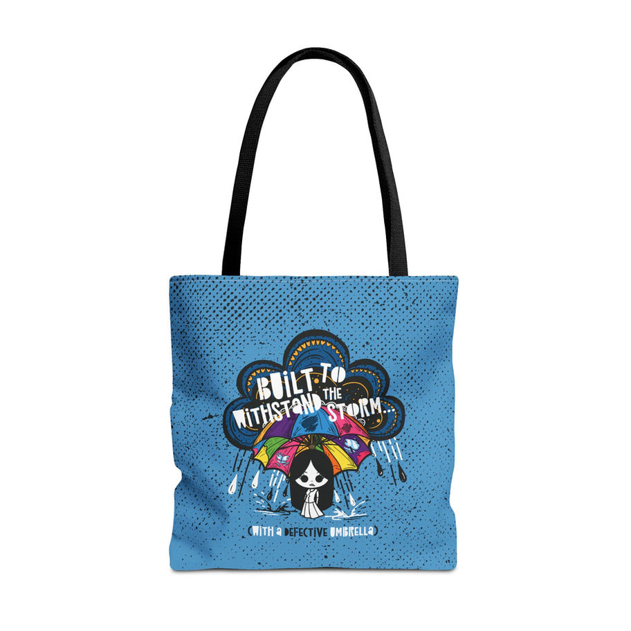 Bring a touch of humor to everyday life with this Built to Withstand the Storm (with a Defective Umbrella) tote bag. Designed for those who face life’s challenges head-on—sometimes with imperfect tools—it’s a playful nod to the ups and down(pour)s of mental health struggles. Whether for groceries, books, or just carrying your daily essentials, it’s a conversation-starter that blends practicality with personality.