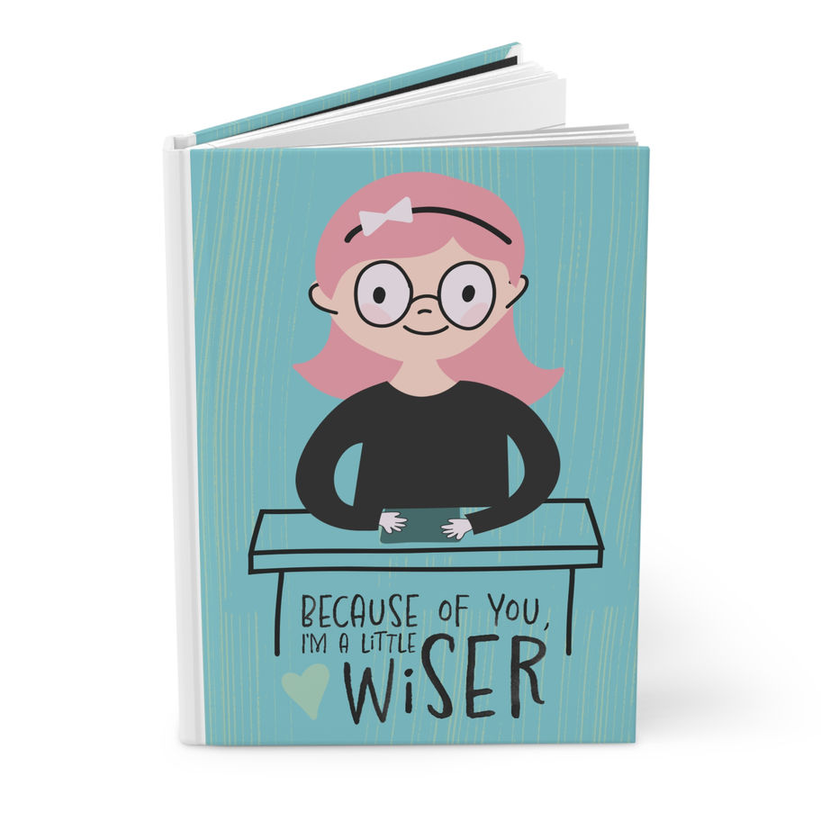 Matte Journal - 'Because of you I am a Little Wiser' Inspirational Hardcover