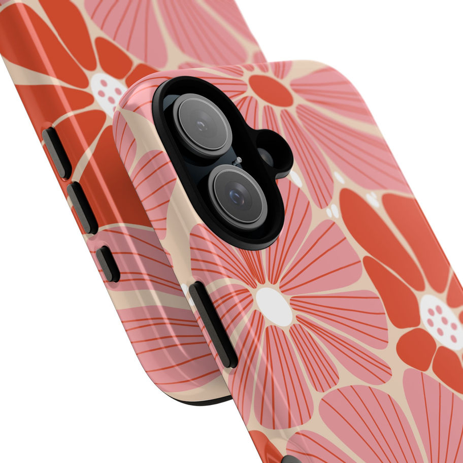 Retro Warm Floral Tough Phone Case - Vibrant Pink & Orange