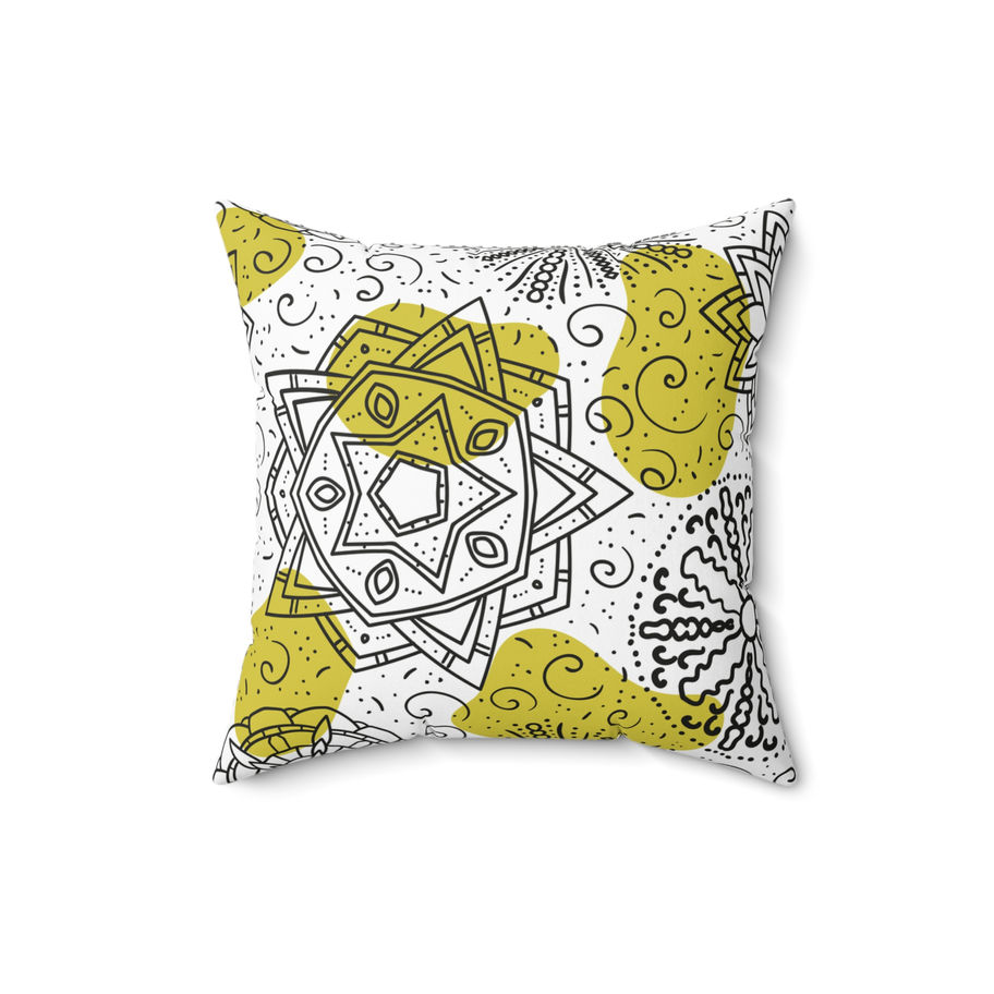 Yellow-Green with Black Bohemian Design - Square Pillow